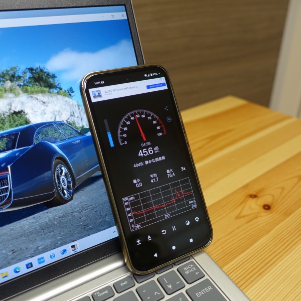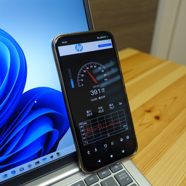 ファンの音をスマホの騒音計アプリで計測してみました。 ネットを見るなど一般的な使い方をしているとき、通常はファンの音が聞こえず、36-40dB程度で静か。