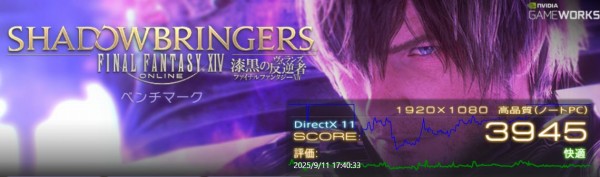 負荷が中程度のベンチマーク「ファイナルファンタジー14 漆黒の反逆者」 の結果は、高品質で「快適」、最高品質で「やや快適」。