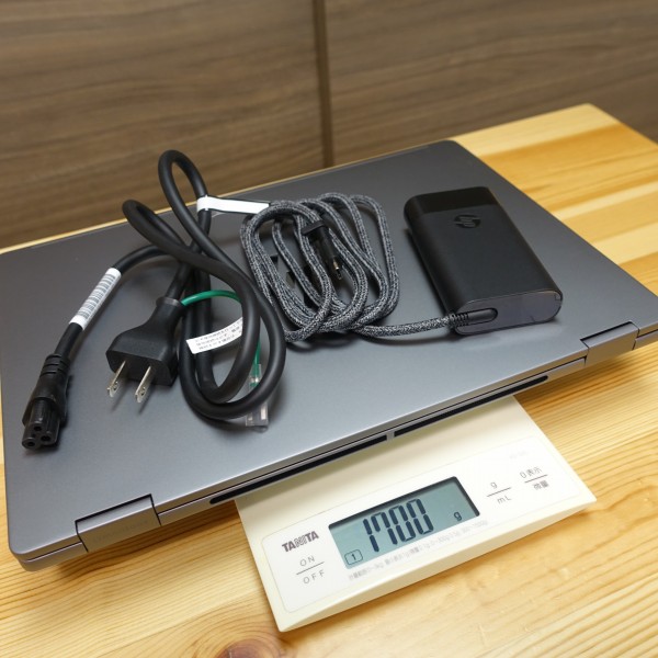 2-in-1タイプだとボディが重くなりがちですが、本モデルは14インチ2-in-1 PCとしてはそんなに重くはない印象を受けます。すごく軽い、という感じではないですが、 これぐらいの重さなら、個人的には外に持ち出して使おうと思える重さかな。
