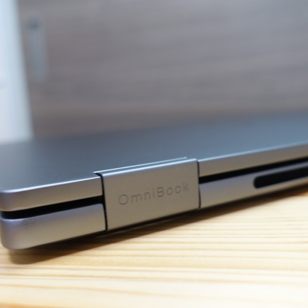 背面部の左のヒンジに「OmniBook」のロゴが刻まれています。