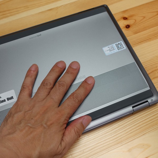 背面部にも通気孔が配置されており、 周辺部のキーボード上部も少し温かくなります。パームレストにほとんど熱は感じなかったですね。