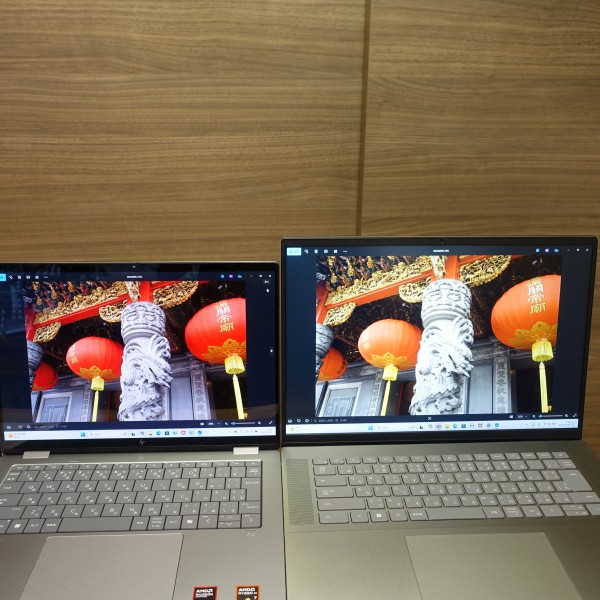 sRGB100%のパネルの色表示も綺麗ですが、より広い色域を確保している本モデルのパネルの方がより表現が深い感じがして、綺麗だと感じました(上の画像の左 sRGB100%の13.3インチパネル搭載PC/右:レビュー機(DCI-P3 100%の14インチパネル))。