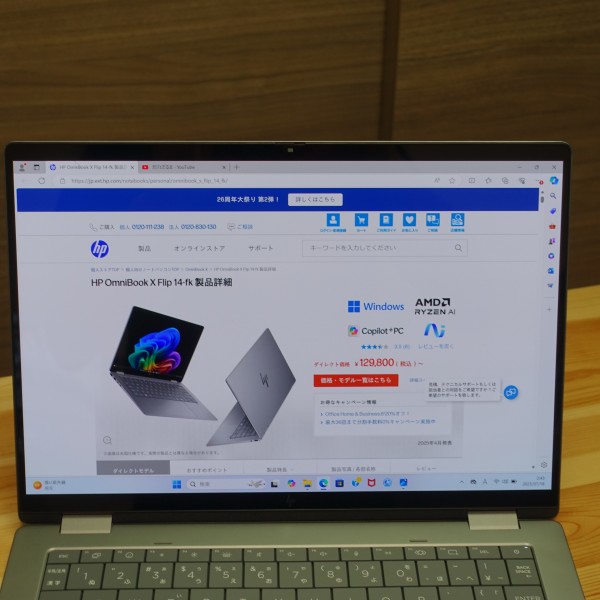 以上、HP OmniBook X Flip 14-fk(AMD)について見てきました。主な特徴は次のとおり。