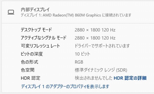 CPUの性能を測定するCINEBENCH R23のスコアは11974。 同じAMD Ryzen AI 7 350プロセッサを搭載している他のモデルのスコアが13405なので、それを下回っています。