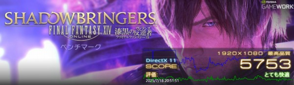 負荷が中程度のベンチマーク「ファイナルファンタジー14 漆黒の反逆者」の結果は、最高品質で「とても快適」。