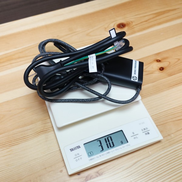 ACアダプタと電源ケーブルを合わせた重量は310g(実測値)。