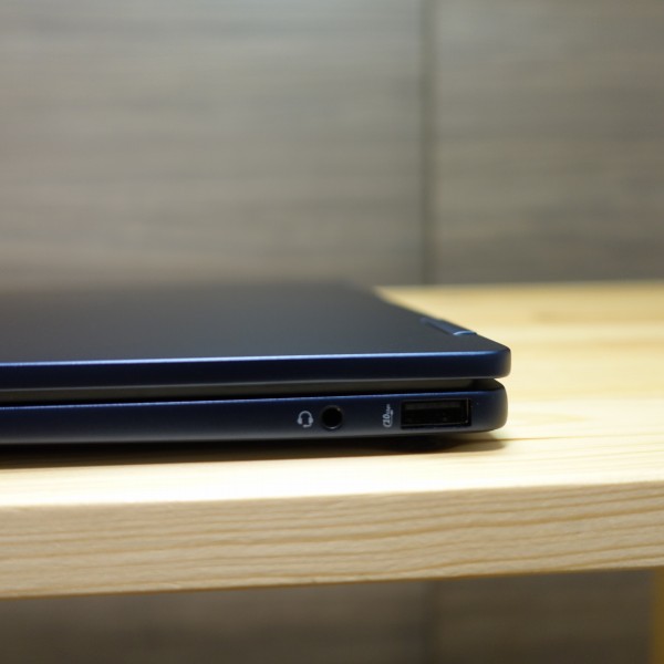右側面部。ヘッドホン・マイクコンボ、USB Type-Aを配置。