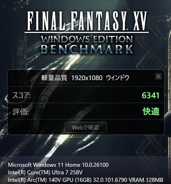 重い負荷のかかるFF15ベンチマークの結果は「軽量品質」で「快適」、「標準品質」で「やや快適」、「高品質」で「普通」(*ベンチマークのスコアは、マシン構成/使用状況/環境等によって大きく異なる可能性があるのであくまで参考程度にしてください)。