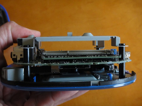 Stream Miniの筐体内部へは簡単にアクセスすることができます。まず本体をひっくり返します。