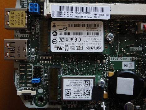 ストレージベイを取り外すと、メモリとSSDが姿を現しました。