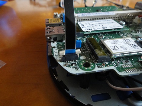 2.5インチストレージを増設する場合には、SATAケーブルを、隅にあるパーツに接続します。