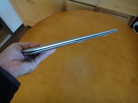 前の方が細くなるデザインを採用しています。したがって、前面部から見るとこんなに薄く見えます。