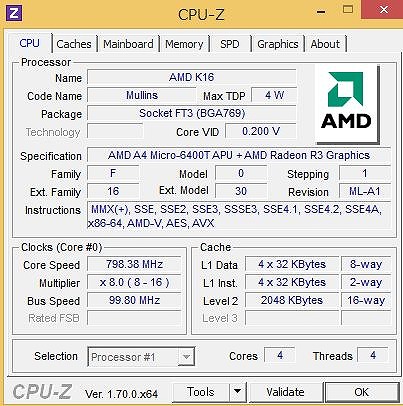 | CPU | AMD A4 Micro-6400T APU (4コア1.00-1.60GHz、Radeon R3 グラフィック内蔵) |