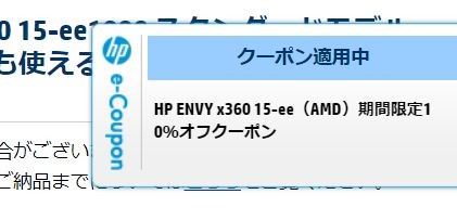 今回のENVY x360 15-ee 10%オフクーポンの詳細条件は次のとおり。