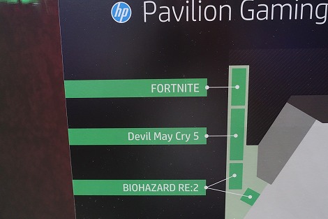 Pavilion Gamingシリーズの試遊台では、FORTNITE、Devil May Cry5、BIOHAZARD RE:2を試すことができます。