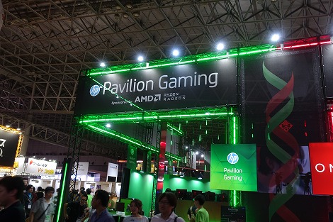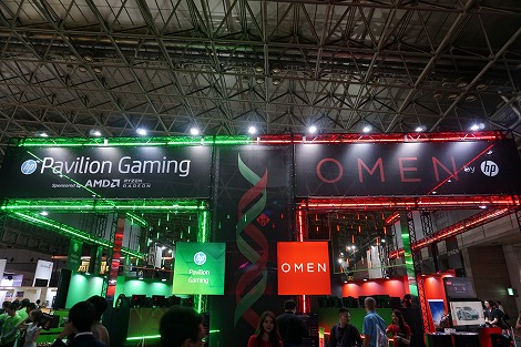 ブースを正面から見ると、左右でPavilion Gaming、OMENに分かれています。