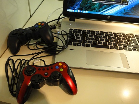 40インチの大型液晶テレビに接続しているので、迫力は半端ないですね。キーボード/マウスに加えて、コントローラとヘッドホンが用意されています。