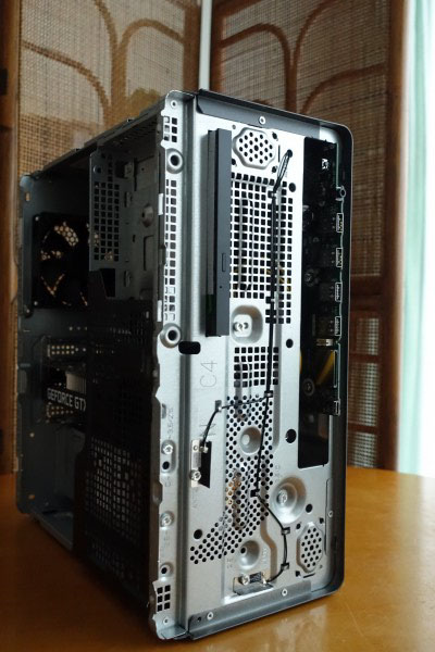 上の画像は、側面部を取り外したときの筐体内部の様子です。