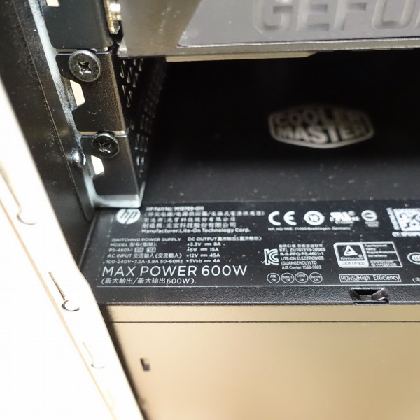 本モデルでは、最大600W or 800Wの電源ユニット搭載モデルが選択できますが、レビュー機には最大600Wのユニットを搭載。