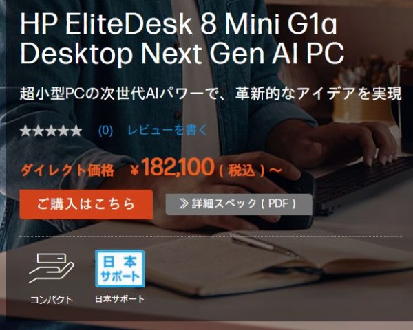 | 機種名 | HP EliteDesk 8 Mini G1a Desktop Next Gen AI PC |