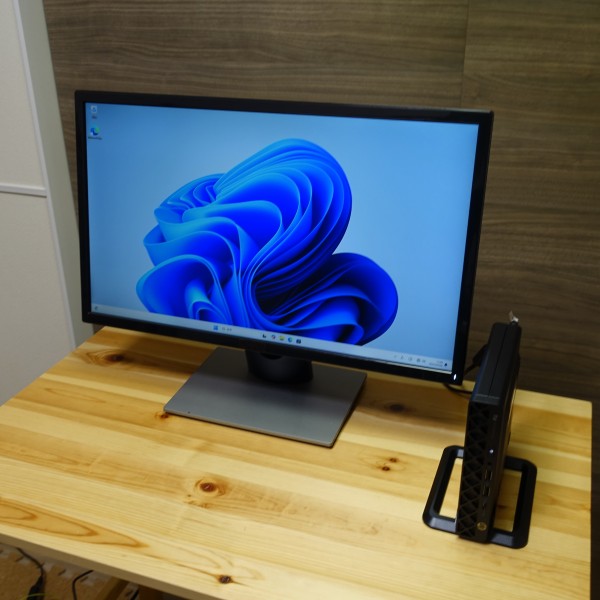 非常にスリム/コンパクトなので置き場所に困るシーンは少ないと思います。24インチモニタに接続するとこんな感じ。