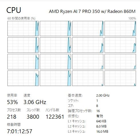 ■レビュー機のスペック:AMD Ryzen AI 7 PRO350/32GBメモリ/1TB SSD/CPU内蔵グラフィックス