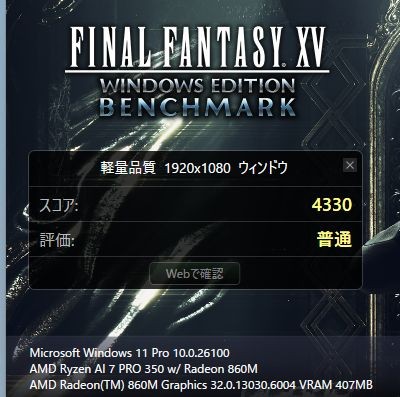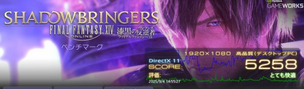 負荷が中程度のベンチマーク「ファイナルファンタジー14 漆黒の反逆者」を実行したところ、 高品質、最高品質とも「とても快適」という結果。