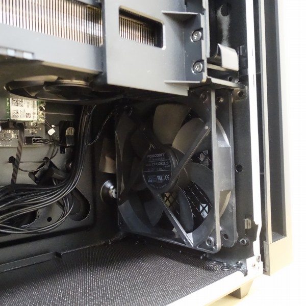 前述したように、サイドフロータイプの空冷クーラーを採用。背面部側にもファンが配置されており、空冷クーラーと同じぐらいの高さのところにあるため、効率的に排熱できます。