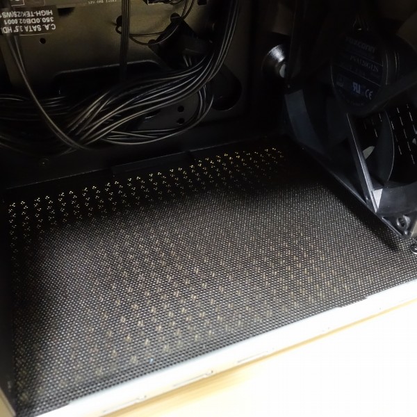筐体内部から底面部を見たところ。ホコリ等が入りにくいような設計になっています。