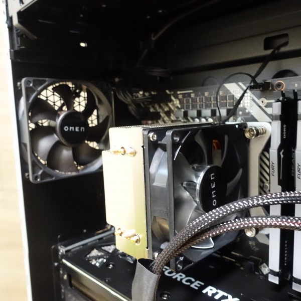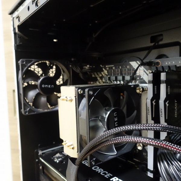 OMEN 25L Desktop(インテル)はゲーミングマシンのため、高い負荷がかかることがあります。なので熱対策もしっかり施されています。ただし、上位モデルのOMEN 40L/45Lでは水冷システムを採用していますが、OMEN 25L Desktop(インテル)では、コストパフォーマンスを重視しているため、水冷ではなく空冷システムを採用しています。