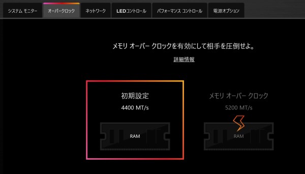 「オーバークロック」ツールでは、メモリのオーバークロックのオン/オフを切り替えることができます。