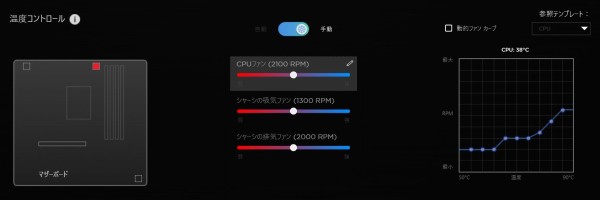 「温度コントロール」では、ファンの回転数を変更jできます。