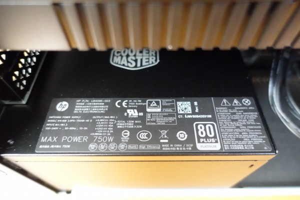 電源ユニットは、Cooler Master 内蔵750W ATX電源、80PLUS Platinum。