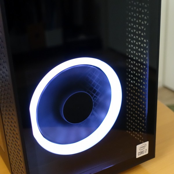 ファンの周辺部にもLEDが配置されており、デザイン面でのアクセントになっています。