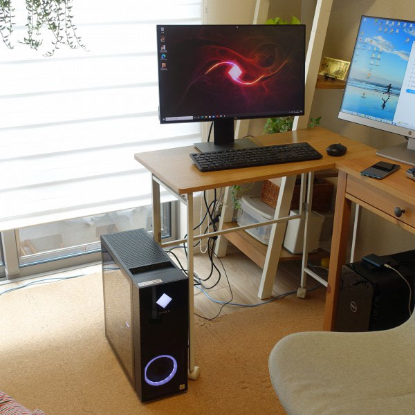 一般的なミニタワー型のデスクトップと比べると大きさがよくわかります。幅はそれほど変わりませんが、OMEN by HP 30L Desktopの方が、高さ/奥行きがあります。