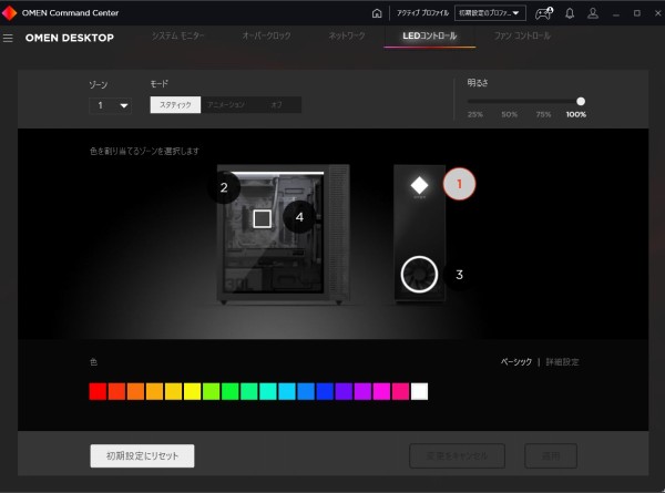 同梱されているOMENツールで、LEDのカラーリングをカスタマイズすることが可能。