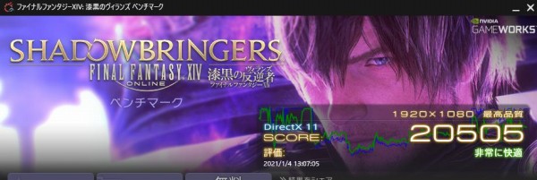 負荷が中程度のゲーム「ファイナルファンタジー14 漆黒の反逆者」のベンチマークソフトの結果は次のとおり。