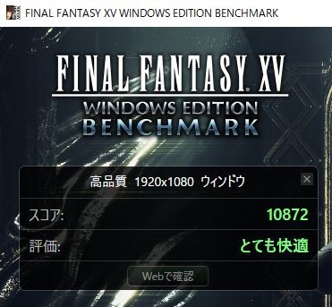重い負荷がかかるゲーム「ファイナルファンタジー15」のベンチマークソフトの結果は次のとおり。