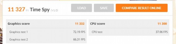 描画処理能力を計測するベンチマーク3Dmarkの「Time Spy」のスコアは「11327」。