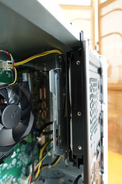 筐体内部の右側にはウルトラスリムベイx1、3.5インチ/2.5インチ兼用×1が搭載されています。