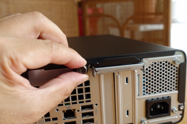 コンパクトボディを採用しているので、使えるPCIeカードはロープロファイルタイプのみ。大きさに制約があるので注意が必要です。