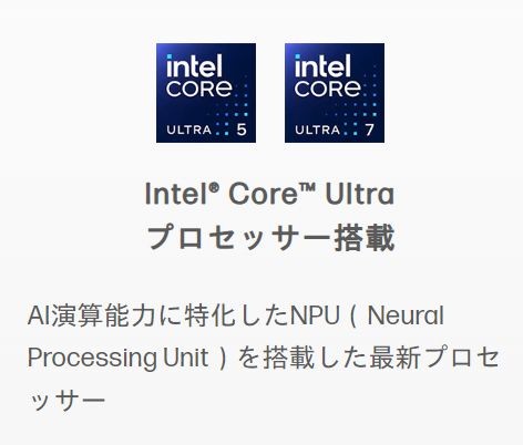 - インテルCore Ultra搭載モデル(AI専用NPU搭載)