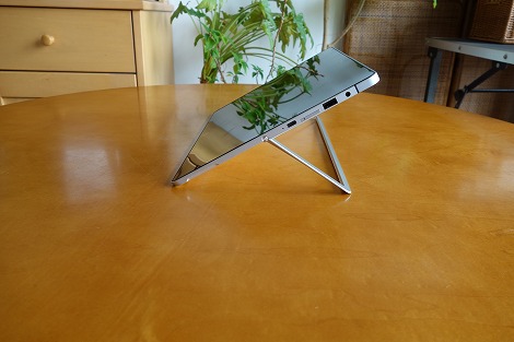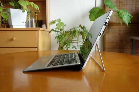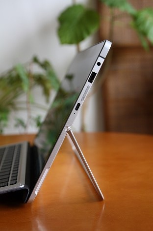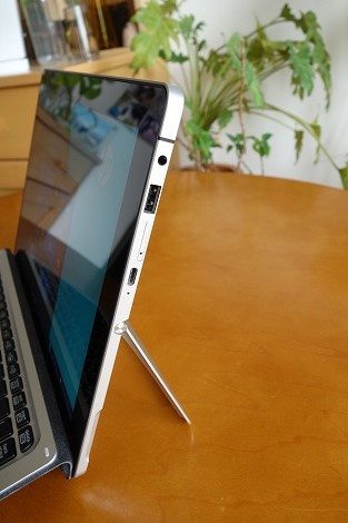 キーボードを装着した状態にすると、各種端子が上部に来る仕様になっているため、端子を使いやすいです。
