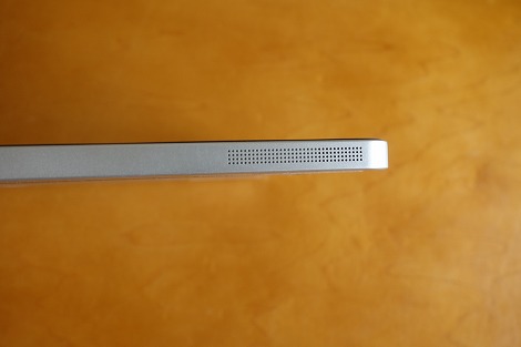 写真左から順に電源ボタン、音量調整ボタンが配置されています。LTE対応モデルの場合には、音調調整ボタンの右にmicro SIMカードスロットが配置されます。