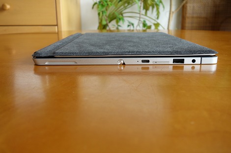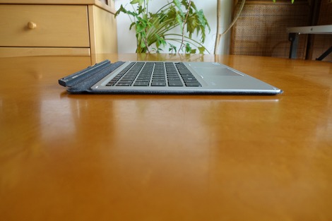 キーボードを装着した状態でも13.45mmしか厚みがありません。すごくスリムなのがわかります。