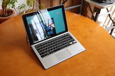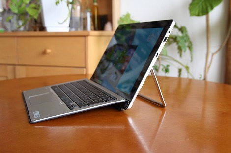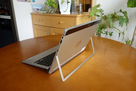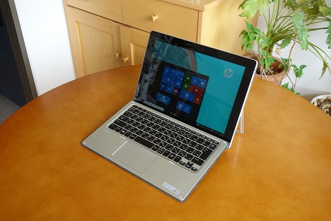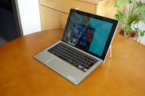 Elite x2 1012 G1は、HPの12インチ液晶搭載タブレット。背面部にキックスタンドを装備しており、オプションのトラベルキーボードを装着することでノートPCのように使用することが可能です。