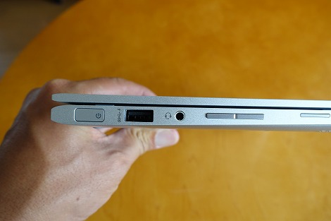 ヘッドホン/マイクコンボ端子、USB3.1ポート、電源ボタンが配置されています。