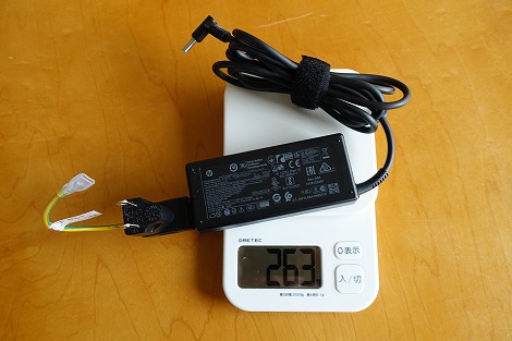 ACアダプタとコンセント部分のみのパーツを合わせた重量は約263g。約70g軽量化できます。