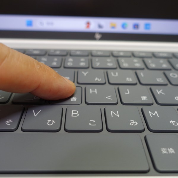 キーピッチ(キー間の距離)はフルサイズと同程度の19mmを確保。タイピングしていて窮屈な印象は受けませんでした。