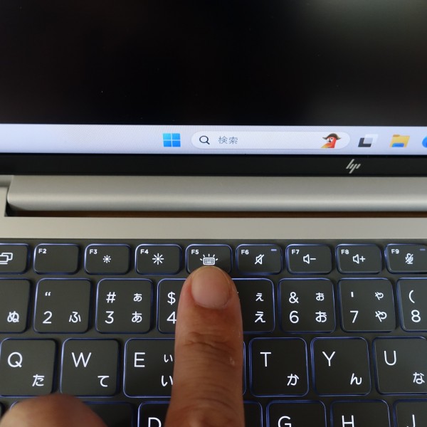 F5キーでオン/オフの切替、明るさの2段階設定が可能です。